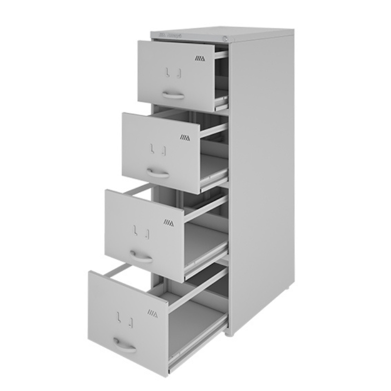 Ótima pedida para bancos, indústrias, escritórios em geral e até mesmo para ambiente domiciliar, que necessitam de organização e armazenagem de pastas, livros e todos os tipos de documentos. Possui 4 gavetas com patins de nylon e suporte para pastas, fundo reforçado e chave para tranca, pés com sapatas plásticas e reguladores de fácil manuseio.