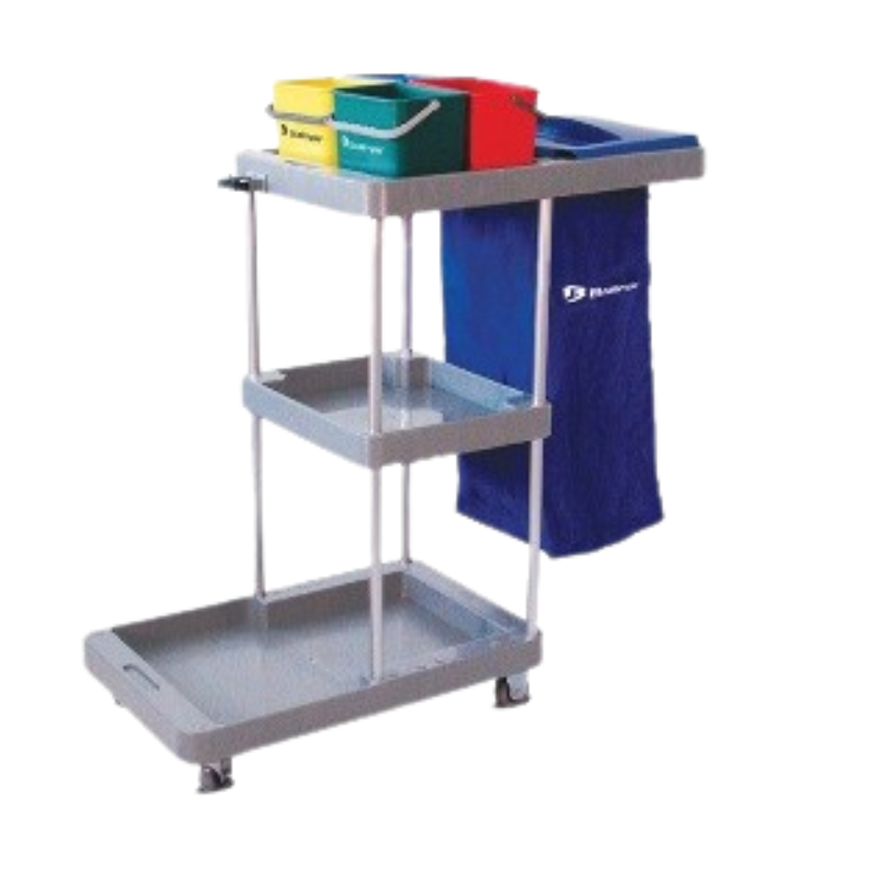 Para tarefas de higiene e transporte de resíduos, fabricado em Polipropileno e estrutura tubular de alumínio. Destina-se ao transporte de utensílios e produtos químicos diversos, permitindo que todos os equipamentos que compõem o sistema de limpeza sejam transportados em uma única vez.