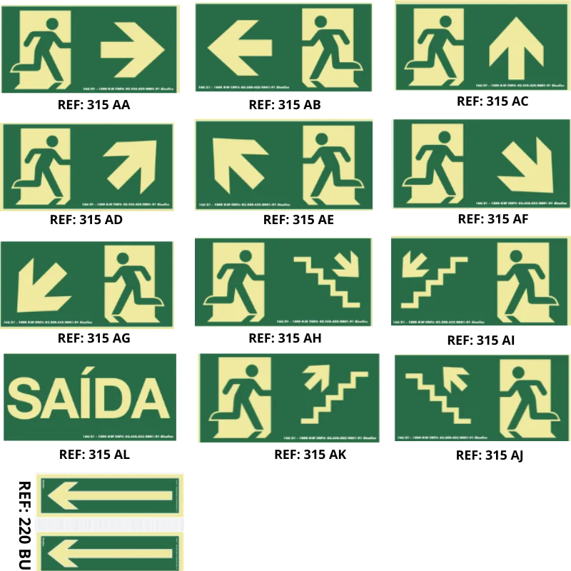 PLACAS ROTA DE FUGA 15X30CM FOTOLUMINESCENTE
